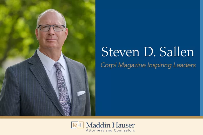Maddin Hauser is proud to announce that Corp! Magazine recognized Steven D. Sallen on its Inspiring Leaders list. Steve joins an exceptional group of business leaders across Michigan who go beyond the bounds of leadership to guide their teams to high levels of success in business and in their communities. These influential people demonstrate tremendous skill in their fields and perform at the highest levels, creating a significant positive impact.