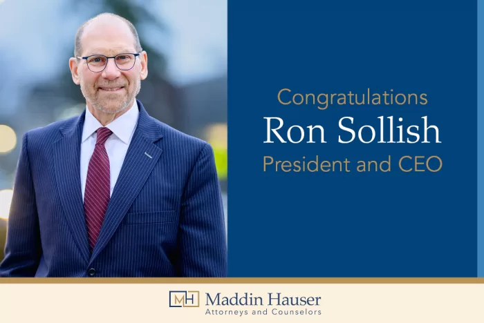 “I am deeply honored to lead Maddin Hauser,” said Ron. “We are incredibly fortunate to have such a talented group of attorneys and professional staff. Steve was an outstanding president, CEO, and leader. I look forward to building on our firm’s strong foundation, growing meaningfully, and continuing to deliver outstanding results for our clients.”